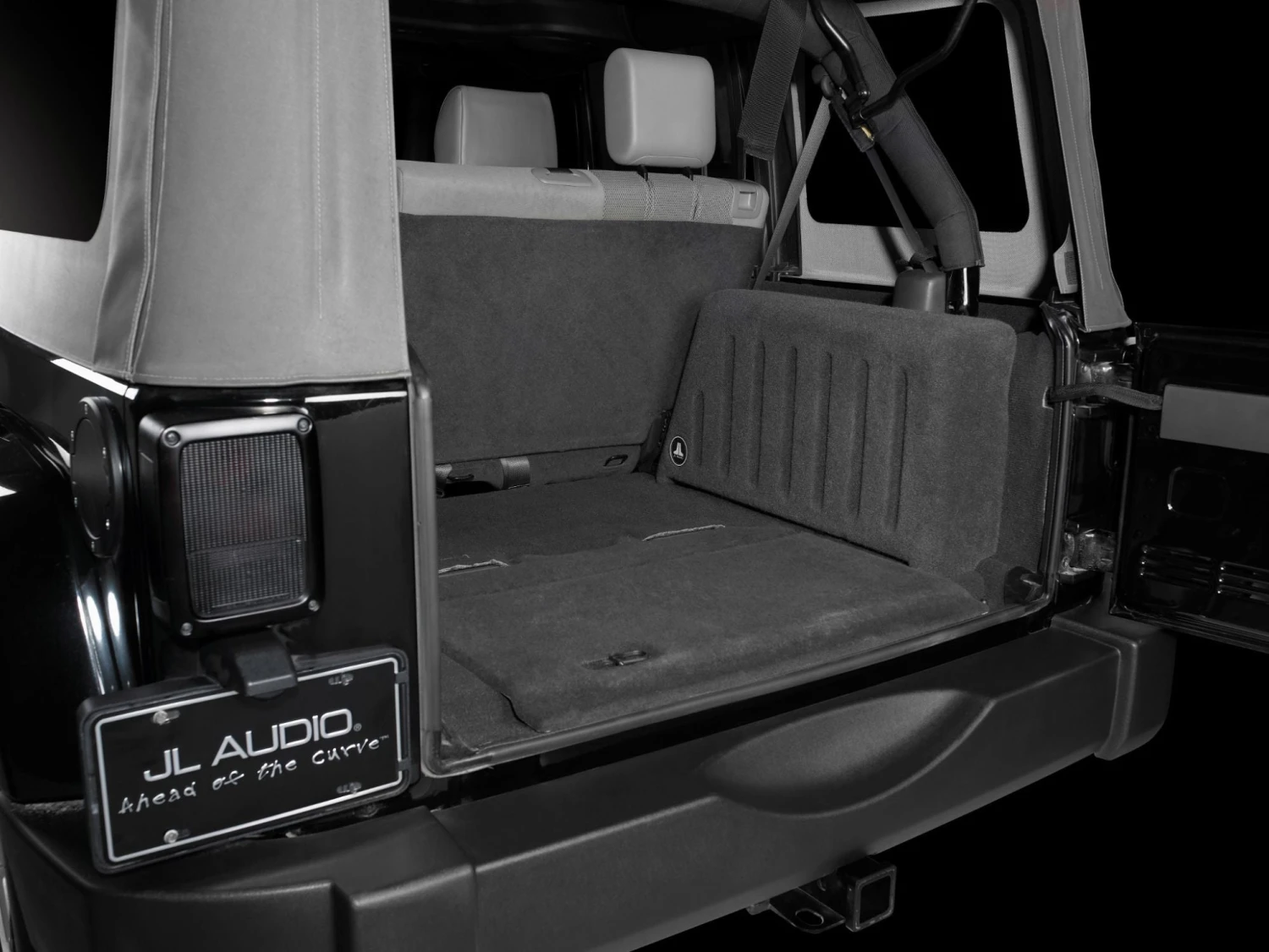 Our Stealthbox® for the Wrangler Unlimited® is designed to provide powerful, audiophile bass quality without significantly compromising your precious cargo space. Our patented, low-profile TW5 subwoofer technology makes it possible to extract amazing bass from a very thin enclosure that bolts solidly to the passenger-side rear wheel well. Rugged, 100% fiberglass construction is as tough as your Jeep® and the protected driver position means that you can still toss all your gear in the back without worrying about damage. It also won’t call attention to itself in parking lots… even if you have a ragtop.
