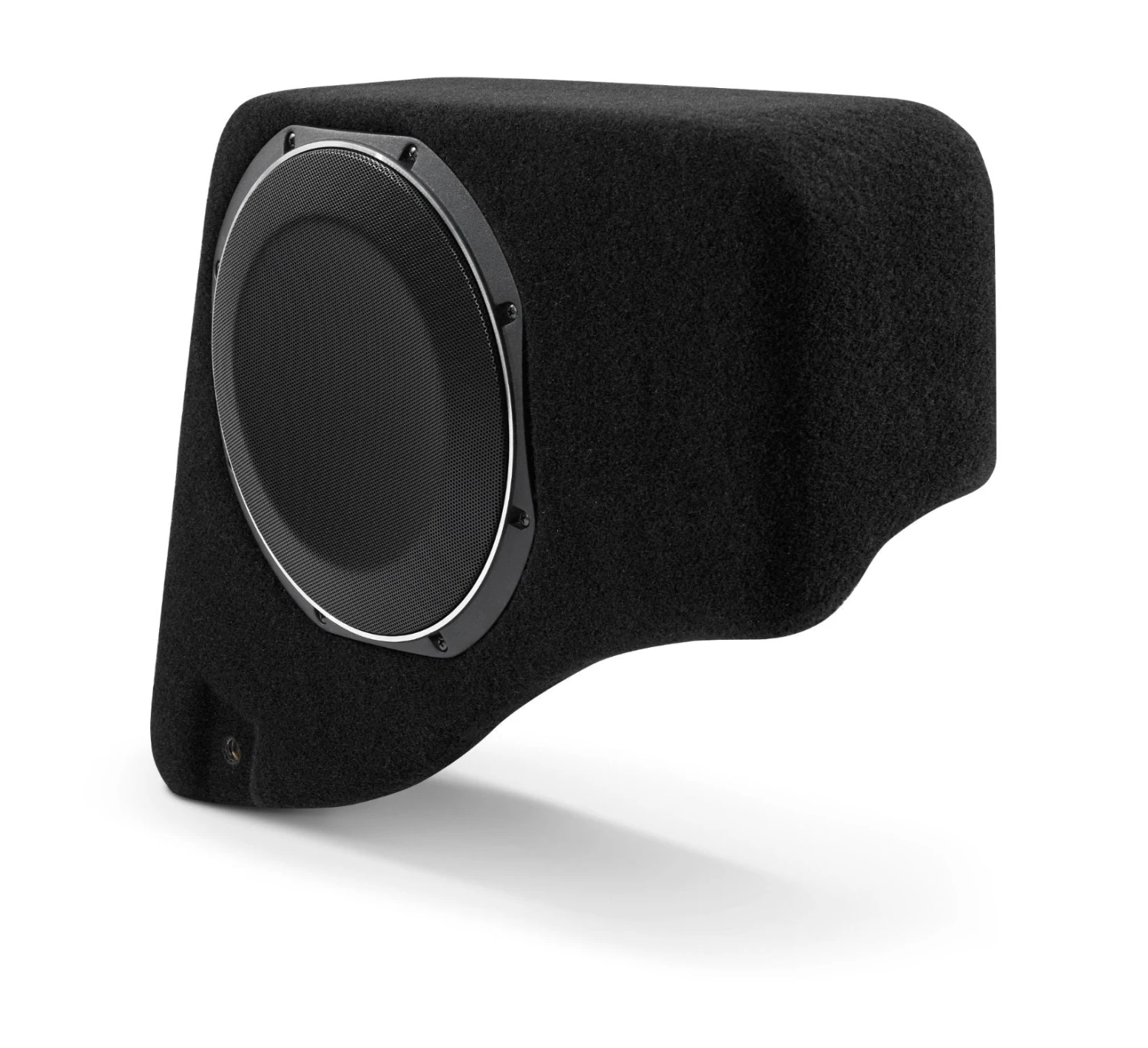 The Hard Data: Each system contains one 10TW1-2 in a sealed enclosure with 300 watt power handling. Each enclosure is wired for 2 ohms. A steel mesh grille is included with each to protect the Subwoofer. Each enclosure installs above one rear wheel well, with specific models for passenger and driver side. Does not affect hard top installation.