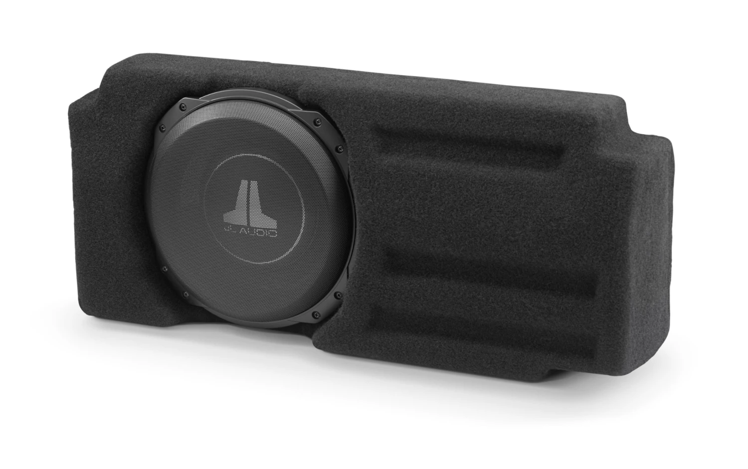 Utilizing the small box prowess and shallow mounting depth of our 10TW3 subwoofer, we sculpted a Stealthbox® to fit snugly behind the rear seat.