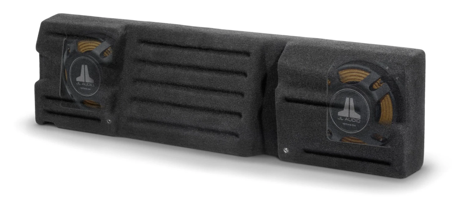 The Hard Data: Contains two 10TW3-D8 Subwoofers in a sealed enclosure. 800 watt power handling. Wired for 2 ohm mono. Installs behind rear seat-backs and requires no permanent modifications to the vehicle. Factory subwoofer (if equipped) must be removed and jack tools must be relocated for installation of Stealthbox.